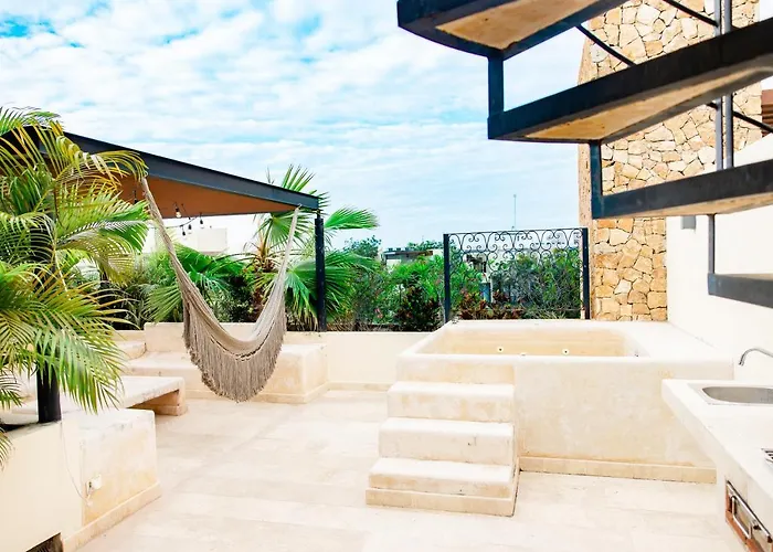 Chic Rooftop Ph, Private Pool, 1Mi From The Beachアパ-トメントは,トゥルム中心部から徒歩約15分のZama地区に位置し,庭園の景色を望むテラスを提供しています. この施設にあるのは3のベッドル-ムと3のバスル-ムです.
